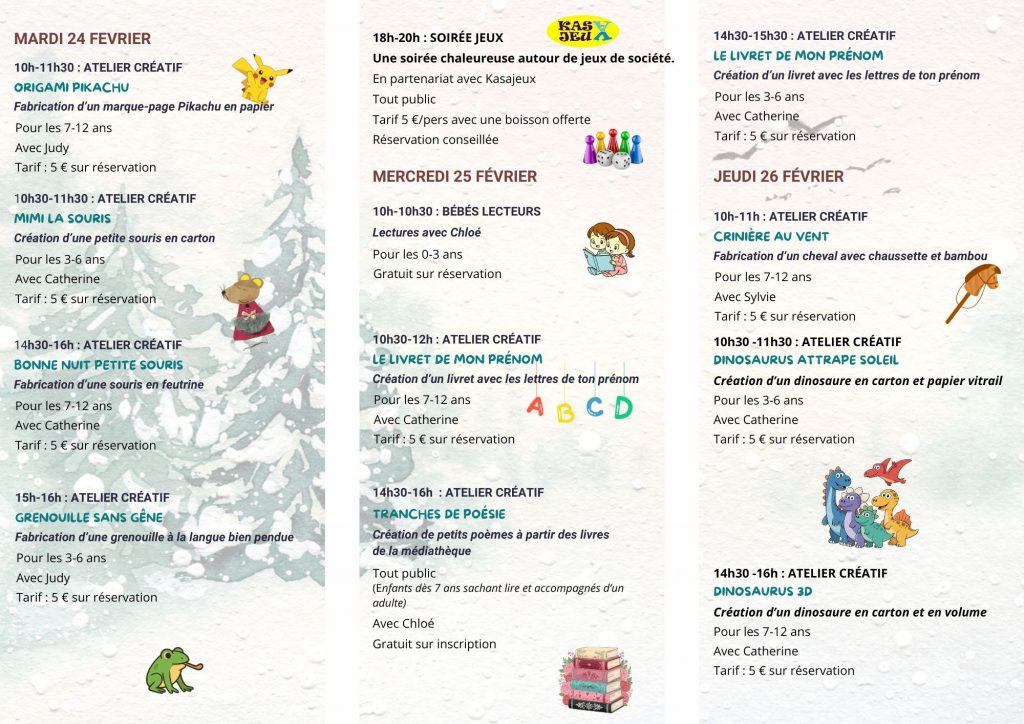 Programme des vacances scolaires de février